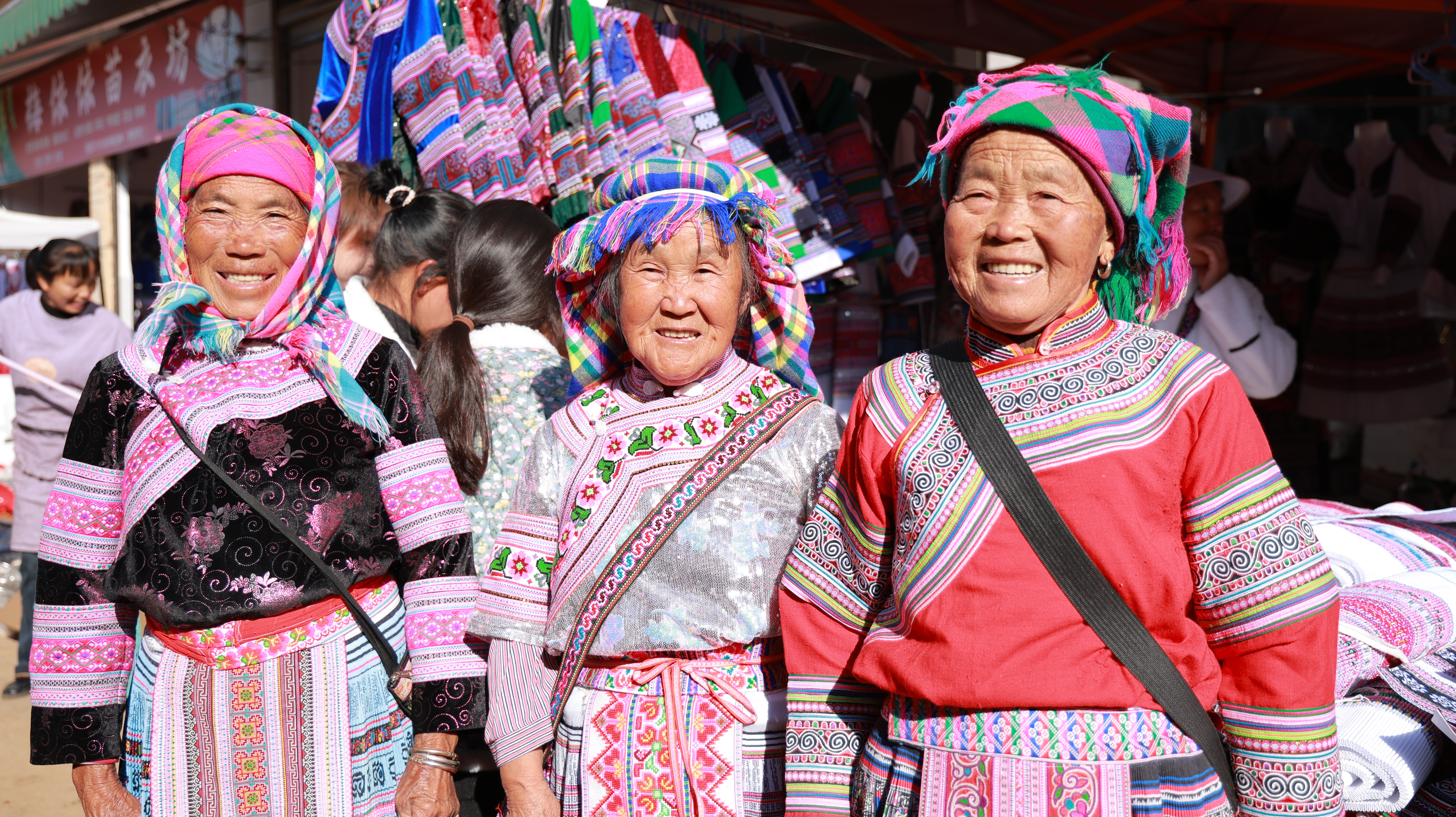 在老街熙攘的人群中,几位身着传统苗族服饰的老人引起了记者的注意。“我们几姊妹约着来逛街,买新衣服过年……”70多岁侯占麦老人向记者说道,脸上洋溢着开心的笑容,还向记者展示了她刚入手的一条绣花裙子和一件精致的围腰。